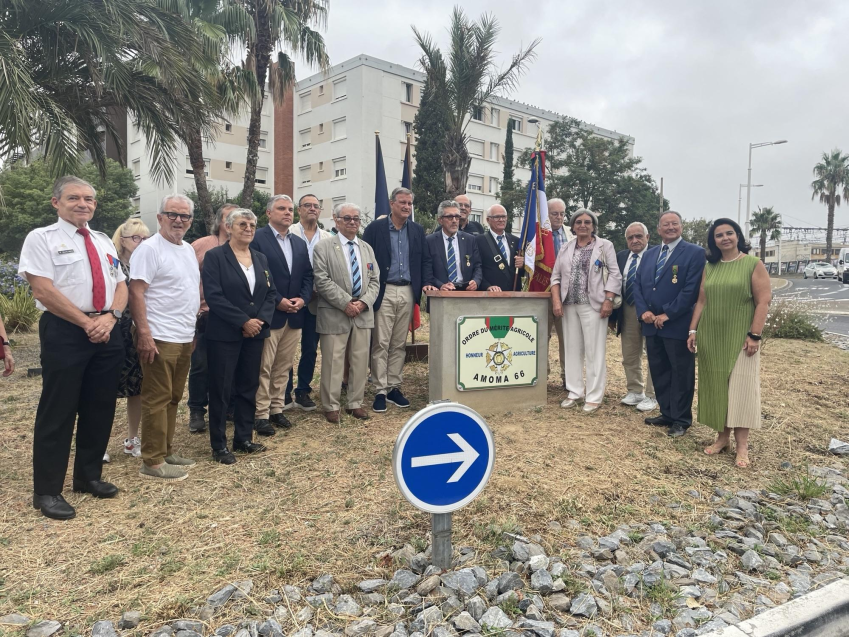 Mardi 26 août 2025 s'est déroulée la cérémonie de l'inauguration du rond-point du Mérite Agricole à Perpignan quartier Saint-Assiscle proche de la gare TGV. Sur invitation du président de l'AMOMA Roger LAROCHE la section était représentée par le président Gérard ISERN, étant aussi président de l'association de quartier Saint-Assiscle Perpignan. Les autorités présentes, Louis ALIOT maire de Perpignan, Xavier BAUDRY maire des quartiers ouest, Madame la députée Sophie BLANC, les présidents de la SMLH66 Jean-Pierre SALLES-MAZOU et de l'AMOPA Cécile BRENANN-SARDOU ont partagé avec le public présent un moment d'échanges autour d'un café viennoiserie réconfortant à 09h00 du matin. (Article et photo Gérard Isern, mise en page site internet : Hervé Oriol).
