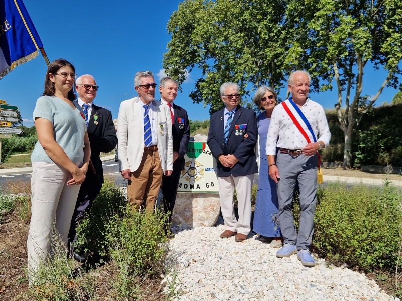 Dimanche 31 août 2025, à Estagel, au niveau de l'ancienne cave coopérative sur le nouvel axe routier ont été inaugurés le rond-point du Mérite Agricole et l'avenue Louis VIGO (ancien président de la cave coopérative). Le président de l'AMOMA Roger LAROCHE était entouré de Mr Roger FERRER maire d'Estagel, de la présidente de la chambre d'agriculture Fabienne BONNET, des présidents SMLH66 Jean-Pierre SALLES-MAZOU, ANMONM66 Gérard ISERN et AMOPA66 Cécile BRENANN-SARDOU. A l'issue des cérémonies les discours, sous les magnifiques et plus que centenaires des platanes de la place du village, précédèrent un apéritif fort local aux vins du terroir. (Article et photo Gérard Isern, mise en page site internet : Hervé Oriol).