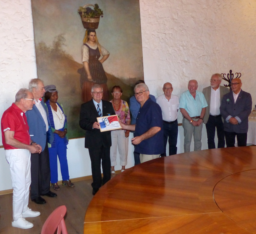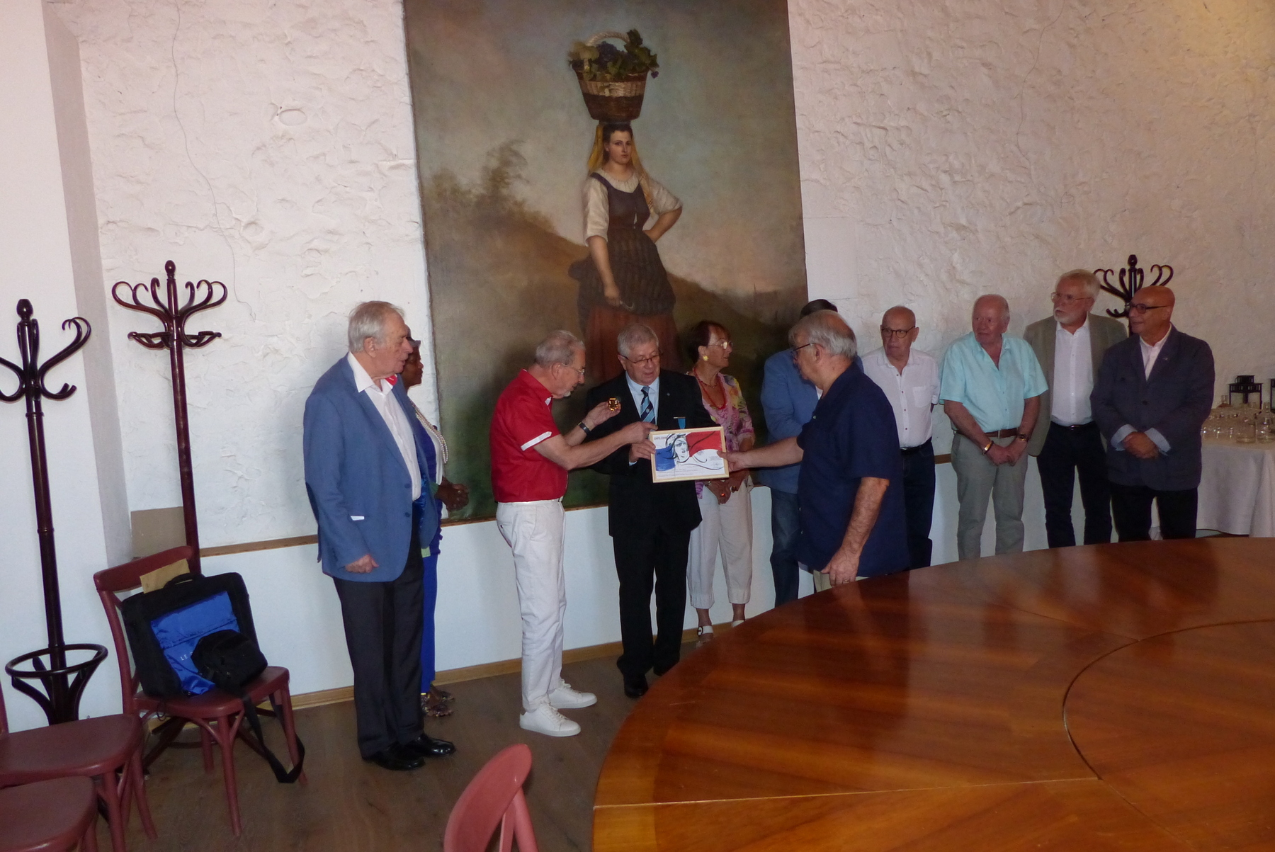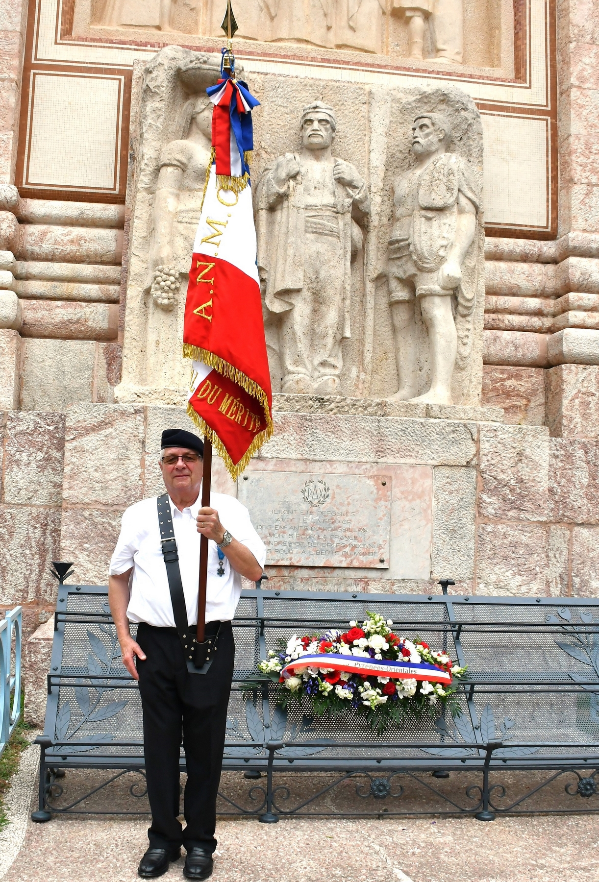 Le 29 août 2025, à l’issue de la réunion du Comité de l’ANMONM 66 à Rivesaltes, le porte-drapeau, Hervé ORIOL est mis à l'honneur en recevant des mains du Président Gérard ISERN de l’association ANMONM66, son diplôme signé de la ministre déléguée de la mémoire et des anciens combattants Patricia MIRALLES, son insigne de porte-drapeau avec mention 10 ans. Ce dernier sera désormais accroché sur son baudrier. D’une belle prestance, il est chaleureusement félicité par tous les membres présents.  En effet, son premier port du drapeau de l’ONM avait eu lieu à l’Arc de Triomphe à Paris, pour le ravivement de la flamme lors d’une assemblée générale. Il participe depuis plus de 10 ans à diverses cérémonies départementales en alternance avec les deux autres porte-drapeaux. Hervé ORIOL est également et officiellement porte-drapeau sympathisant à l’association des ACPG de la commune de Sorède, présidée par Gilbert LLONG. Cet engagement patriotique trouve son origine aux souffrances endurées par sa tante, originaire d’Alsace, qui a été faite prisonnière fin 1944 à l’âge de 15 ans à la prison de Colmar par les allemands pour transport de nourriture auprès des maquisards, et ensuite transférée à la prison de Schirmeck. Un enregistrement de France 3 Strasbourg demeure où elle relate une grande partie des faits et la chance qu’elle a eue d’avoir été délivrée par les américains à Schirmeck, à 7km du camp du Struthof où elle était promise d’y être conduite).  (Article sous le contrôle du président Gérard Isern et photos Hervé Oriol, webmaster du site internet ANMONM66 Hervé Oriol).